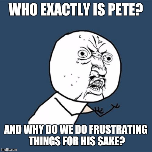 What does for pete's sake mean ~ Think of the omnipresent medieval church and think of hitting your thumb with a hammer. According to the Oxford English Dictionary for Petes sake. Your What does for pete's sake mean photographs are available in this site. What does for pete's sake mean are a topic that has been hunted for and liked by netizens now. You can Download or bookmark the What does for pete's sake mean files here.